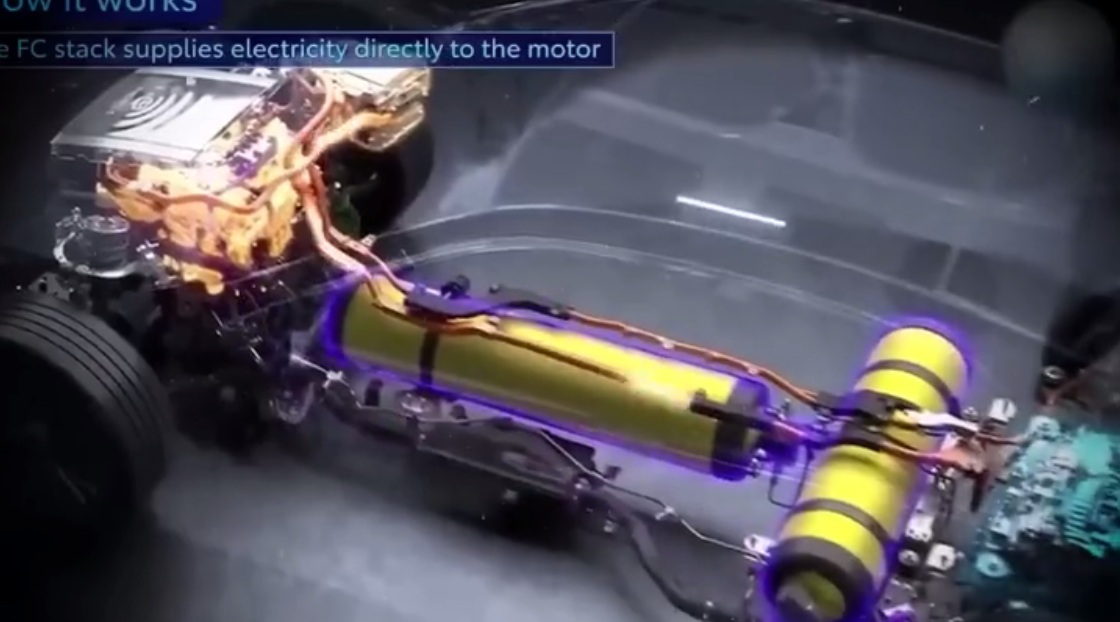 Im Toyota Mirai kommt jedoch die aktuelle Technologie des Herstellers zum Einsatz: Das Modell wird mit einer Wasserstoff-Brennstoffzelle betrieben, die Strom für einen Elektromotor erzeugt. Der Wasserstoff wird in Hochdrucktanks gespeichert und an speziellen Tankstellen nachgefüllt. Im Betrieb stößt das Fahrzeug lediglich Wasserdampf aus – ein Nebenprodukt der chemischen Reaktion zwischen Wasserstoff und Sauerstoff. Das Fahrzeug verfügt aber über kein Elektrolysesystem und produziert keinen Wasserstoff an Bord. Außerdem ist es mit einer Lithium-Ionen-Batterie ausgestattet.