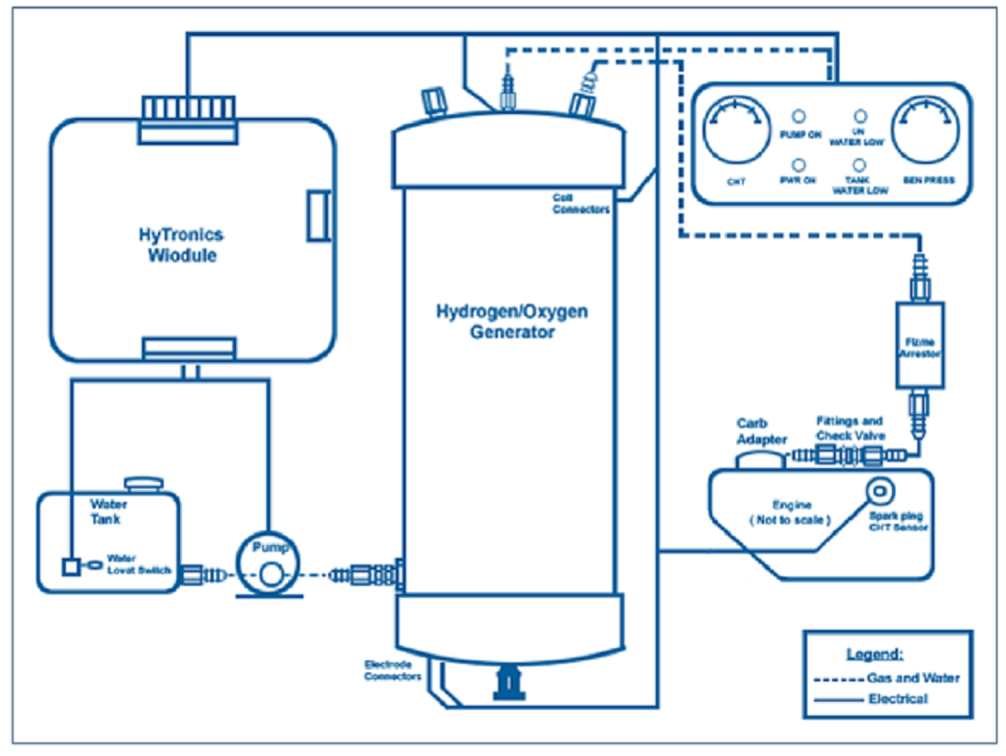 Die Basis auf der sein Generator funktioniert ist die Elektrolyse. Der elektrische Strom trennt den Sauerstoff und Wasserstoff des Wassers. Der Sauerstoff führt zur Oxidation und der Wasserstoff wird zum Brennstoff, was zusammen die Möglichkeit zur Bewegung eines Fahrzeuges erlaubt.