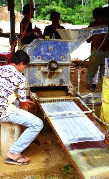 Der Goldsand wird mit Quecksilber versetzt und über eine
