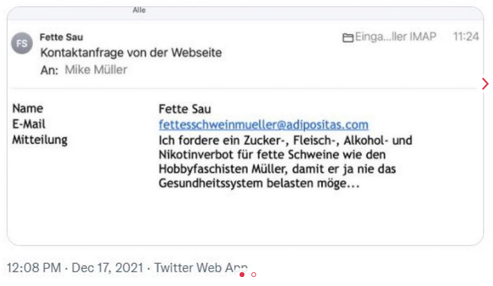 Täter Mike Müller (Schweiz) 27.11.2021: Der Hetzer soll die Quittung erhalten: Kontakt-Webseite: https://www.mike-mueller.ch/kontakt/