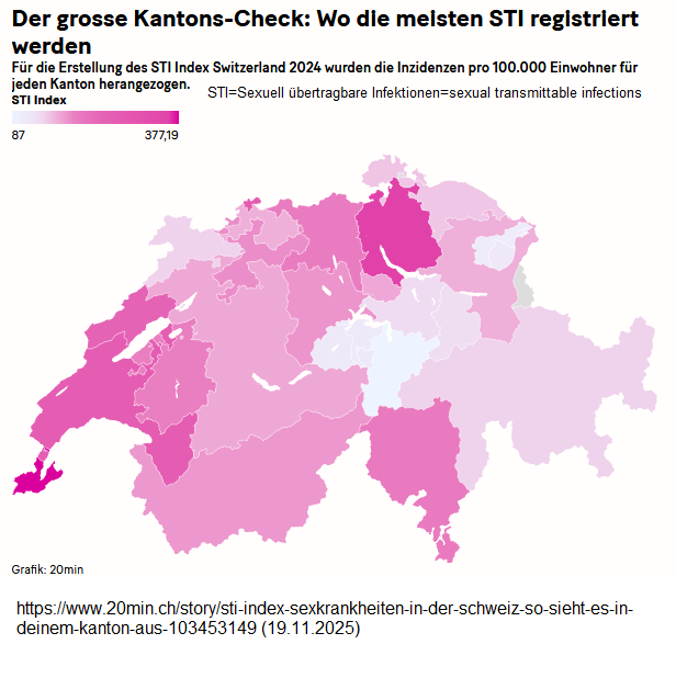 ZAHLEN Schweiz am 19.11.2025: Gemeldete übertragbare sexuelle Krankheiten (STI): Kantone Zürich, Basel-Stadt und Genf sind am schlimmsten: