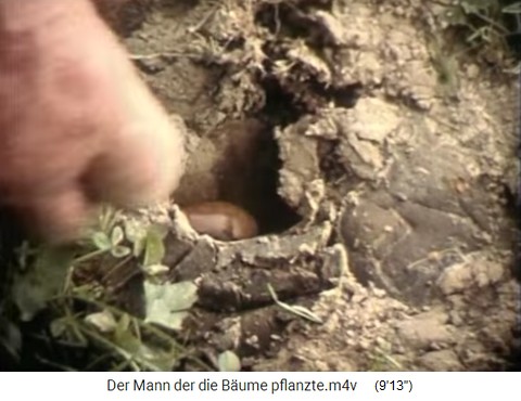 eine Eichel hinein und verschloss das Loch mit Erde