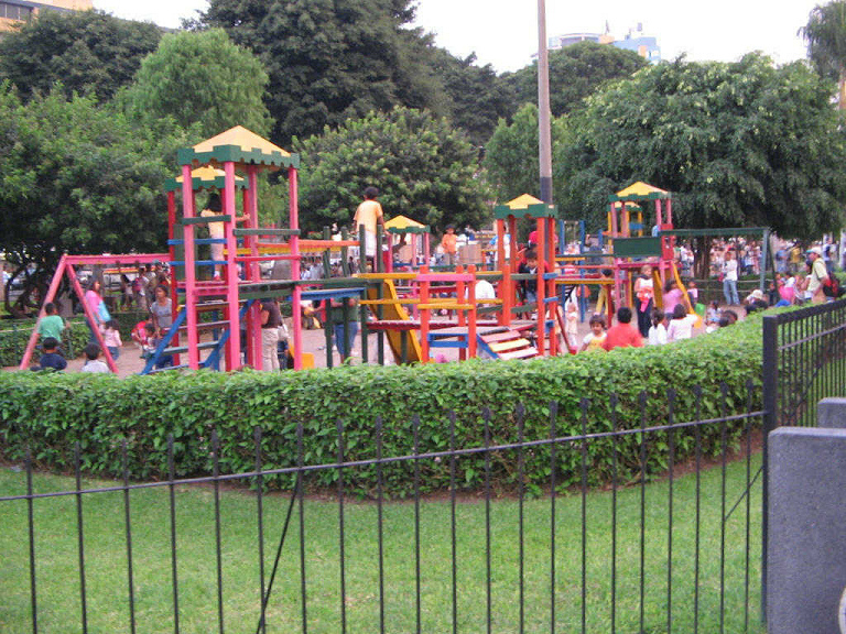 [6] Parque infantil con un césped artificial 03 con castillos, toboganes y hamacas en el parque Kennedy en Lima-Miraflores (2009):