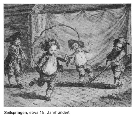 Die Abbildung zum Seilspringen stammt aus dem "Dictionnaire des jeux" von H. Veyrier (ohne Jahr, ohne Verlag).