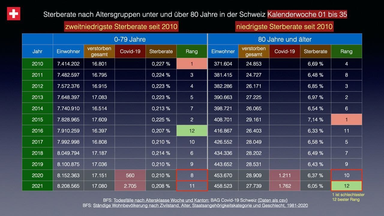 Untersterblichkeit von 2,4 Prozent. Schweden
