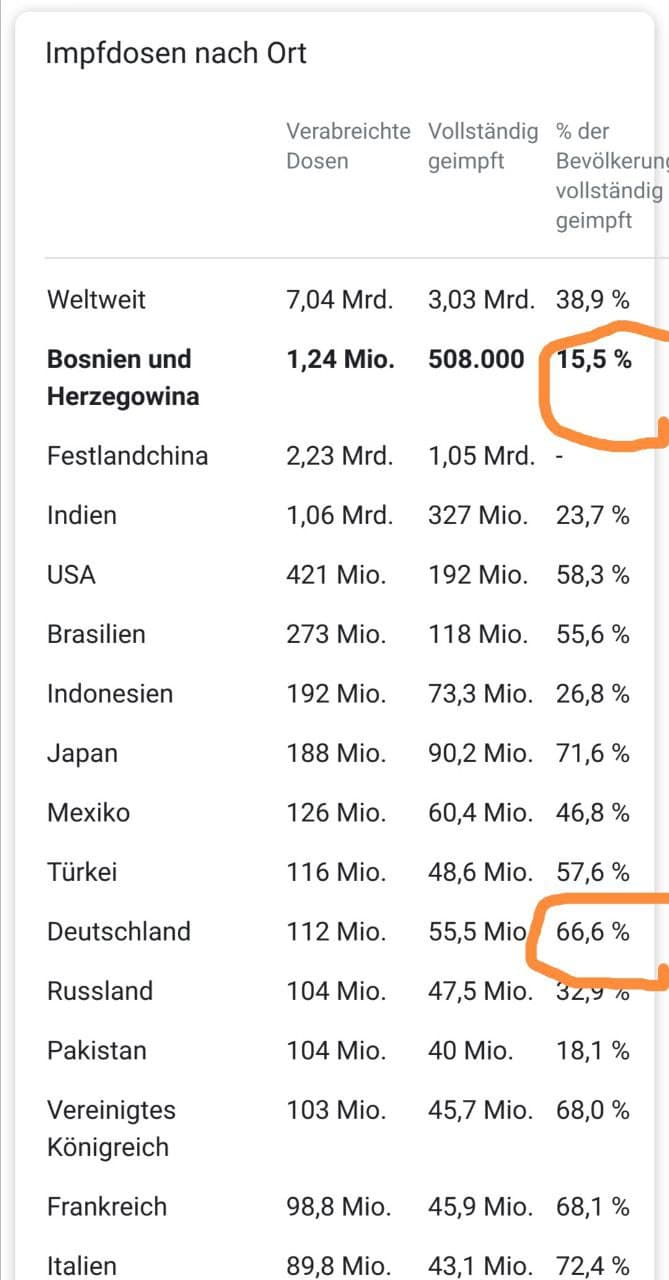 GENimpfquoten 1.11.2021: KEIN Corona in Bosnien mit nur