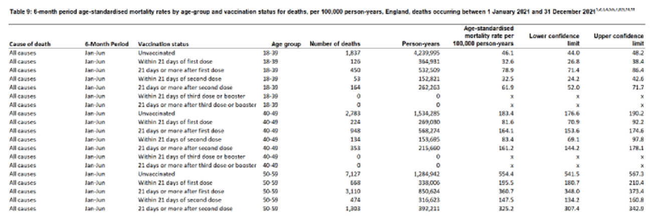 In der Tabelle zunächst die Anzahl der Ungeimpften, die