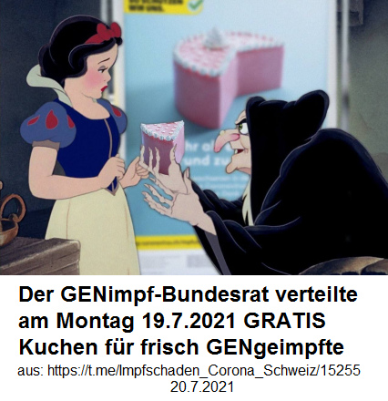 Bilanz der "USA" am 19.7.2021: 9048 GENimpfmorde [7] -- GESTERN 19.7.2021 hat der GENimpf-Bundesrat in Bern Gratiskuchen für frisch GENgeimpfte verteilt.