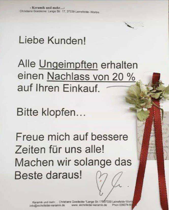 Diskriminierung von GENgeimpften 8.12.2021: Gesunde UNgeimpfte erhalten 20% Rabatt [39]