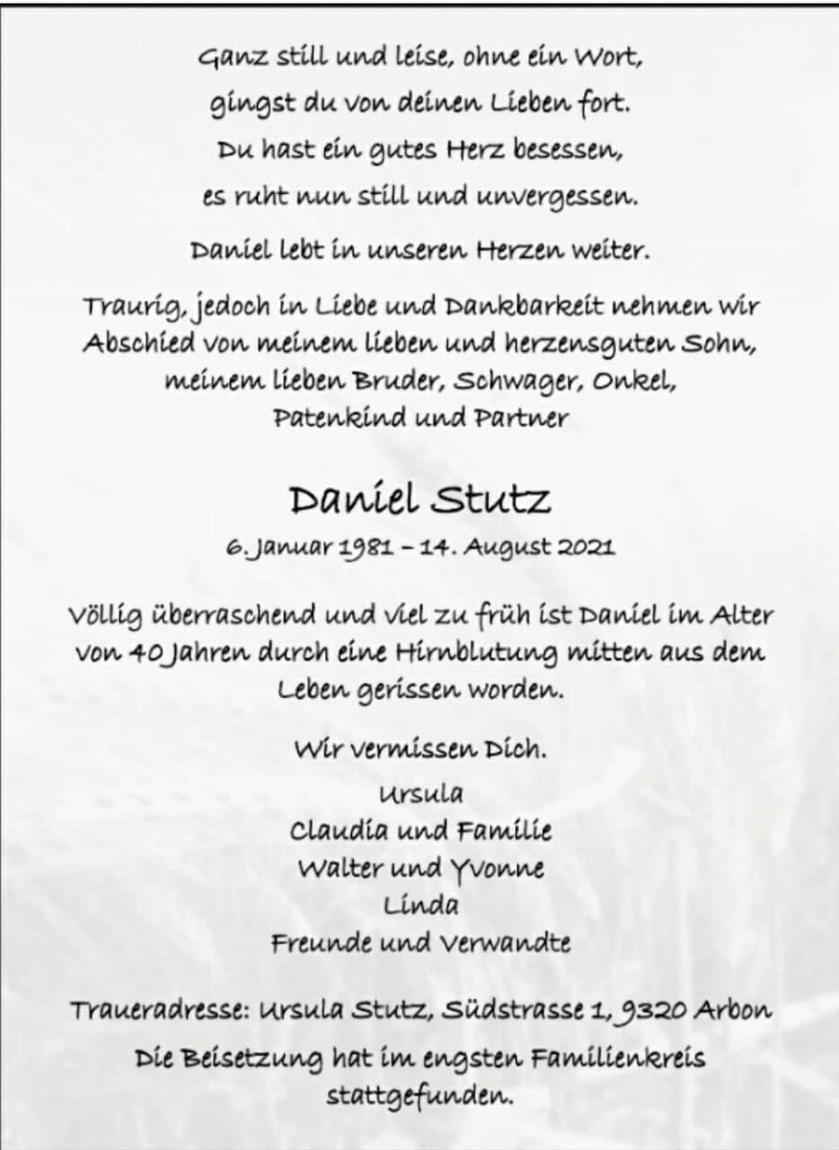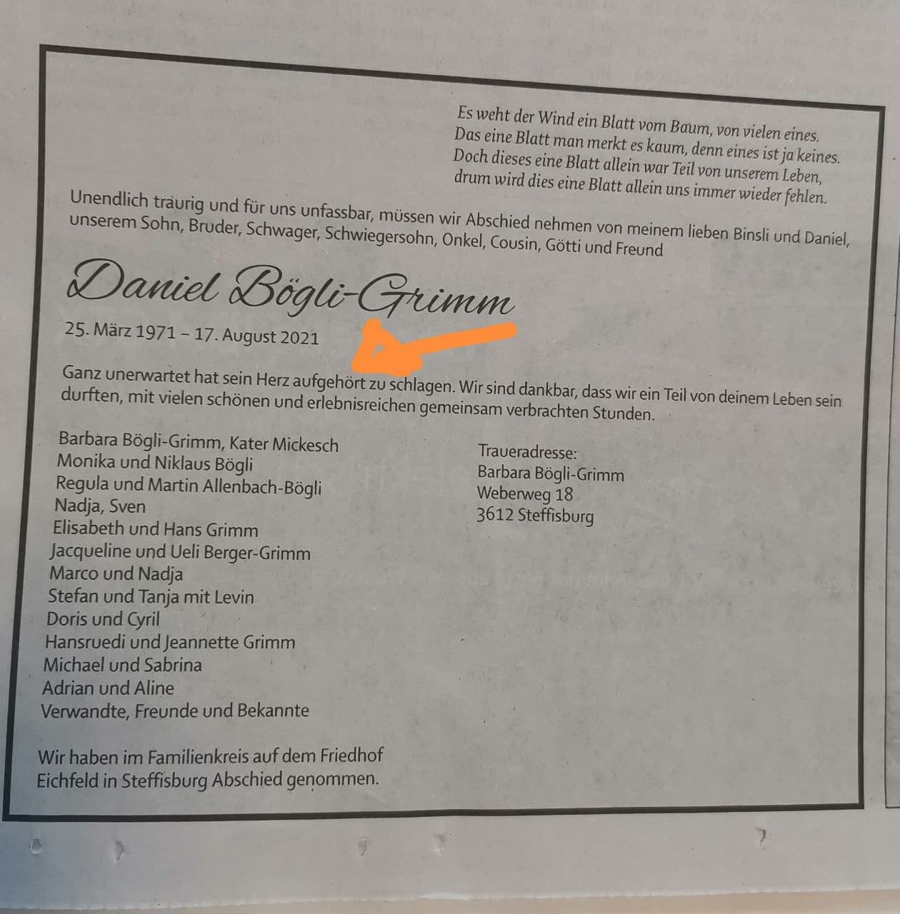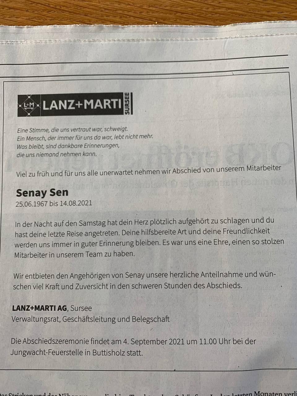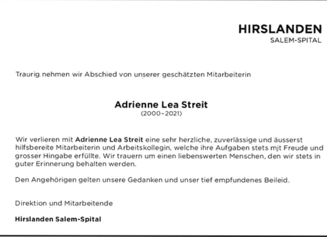 letzten Mittwoch im Krankenhaus verstorben. Wir stehen