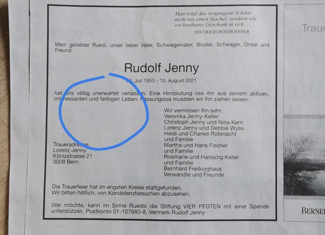 mehr ansprechbar . . . verstarb am 8.April 2021.