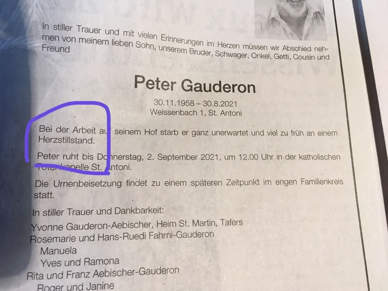 Sohn ( Jahrgang 1975) eines Patienten sei kurz nach