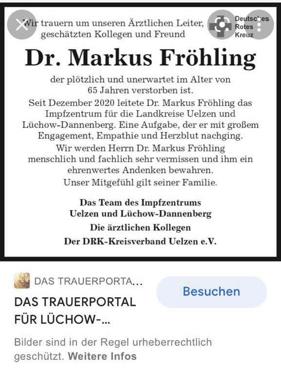 nach dä 2. Impfig gstorbe a Herzinfarkt, d’ Elter vo dem