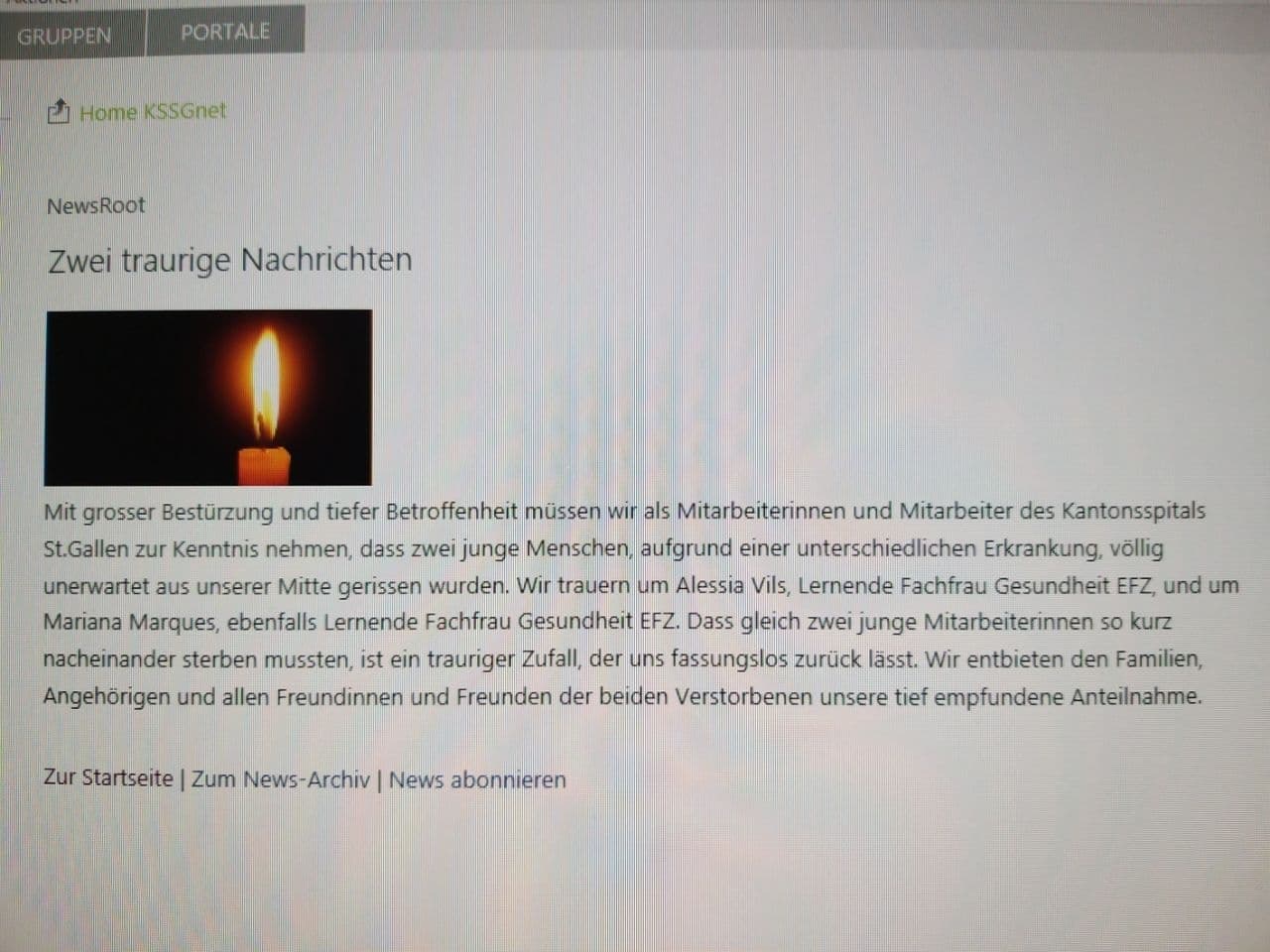 Mitarbeiter fallet us wege Tod vo Aghörige. Die Mitarbeiter