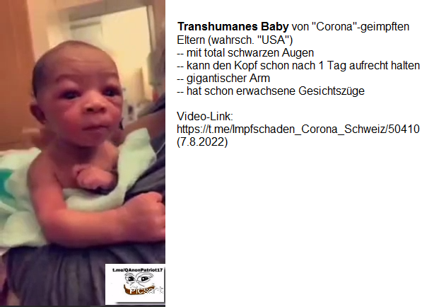 Video 9.8.2022: "USA": Transhumane Babys von "Corona"-geimpften Eltern - mit deutschen Kommentaren - Videos vom 7.8.2022