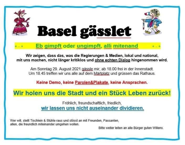 Widerstand in Basel 20.8.2021: Es ist ein Tag zum Gässle geplant 29.8.2021