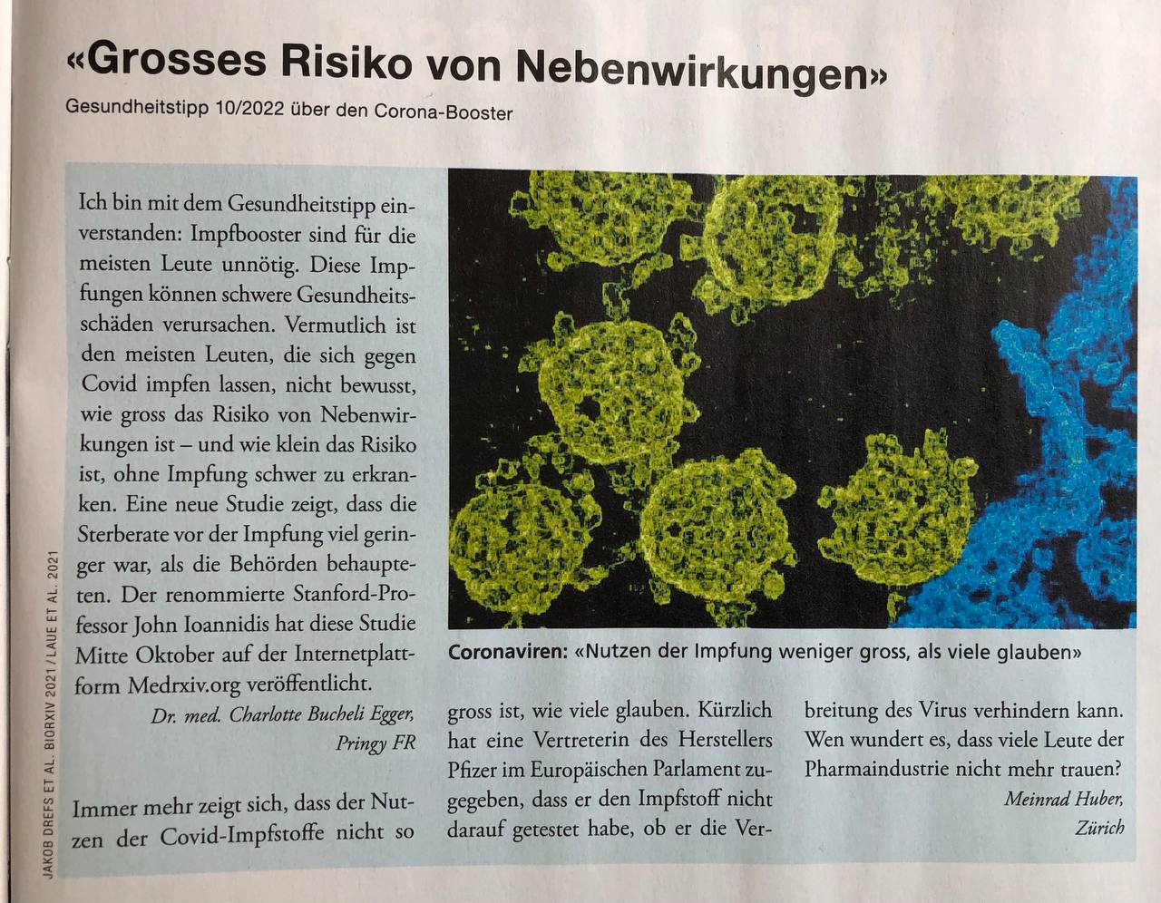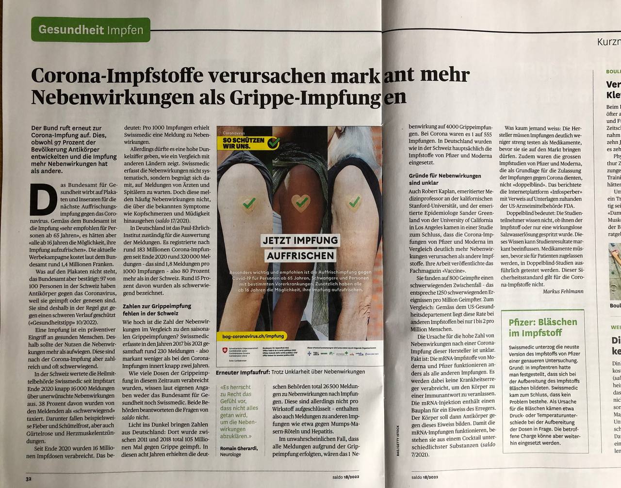 Artikel von "Saldo" (Schweiz) 8.11.2022: Corona-Impfstoffe verursachen markant mehr Nebenwirkungen als Grippe-Impfungen [34]