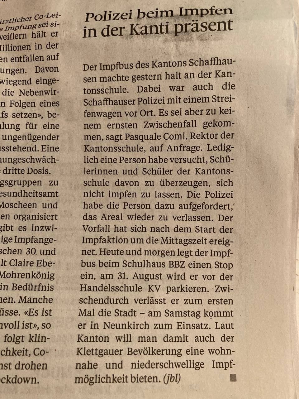 gestern an einer Berufsschule im Kanton SZ ein junger