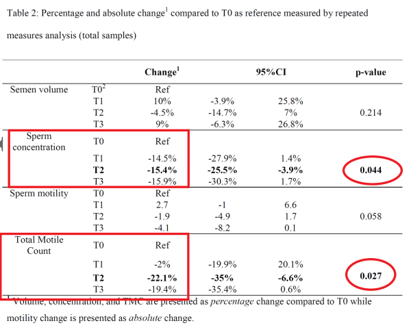Spermienkonzentration des Mannes für bis zu fünf Monate