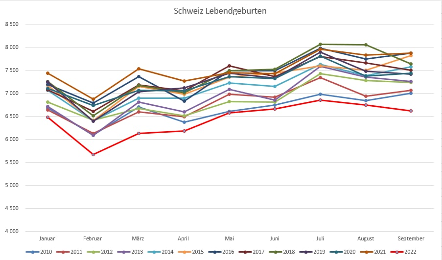 Geburteneinbruch Schweiz 22.11.2022: Daten bis September 2022: Die neusten Daten vom Bund mit Lebendgeburten September. Es sieht nicht besser aus [24]