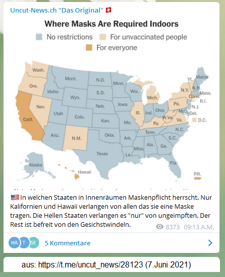 "USA" 6,.6.2021: 34 Bundesstaaten OHNE