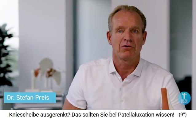 [web05] Video von Dr. Stefan Preis: Kniescheibe ausgerenkt? Das sollten Sie bei Patellaluxation wissen!: https://www.youtube.com/watch?v=1rLJ3fjC1Ug