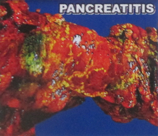 Una pancreatitis es una inflamación del páncreas. Los síntomas son: dolores fuertes en el abdomen superior, vómitos, constipación y fiebre, cuando es crónica (a partir de 6 meses) también con restos con grasa y con pérdida de peso. También puede causar diabetes por la falta de producción de insulina, o puede causar cistas y hemorragias.