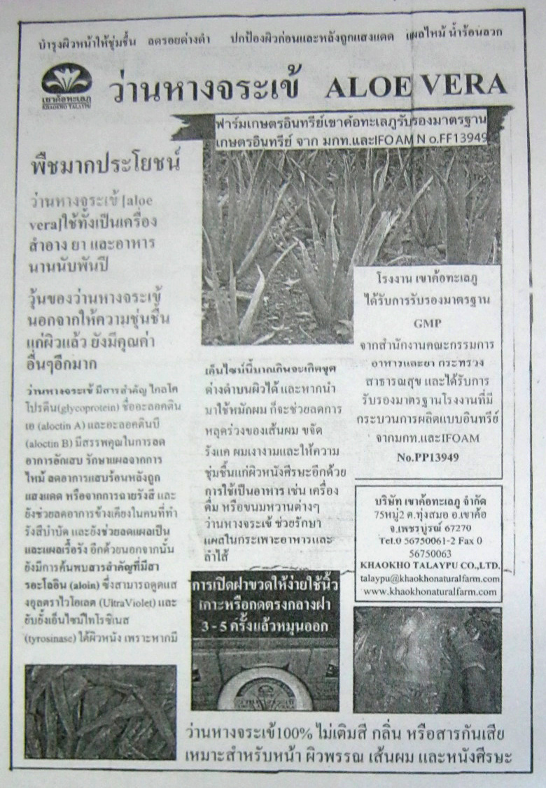 Wundheilung mit Aloe Vera (100%), hier im Glas - Der Beipackzettel auf Thailändisch