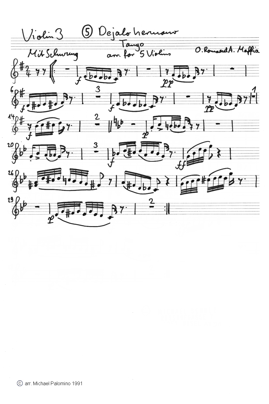 Tangos arranged for several violins