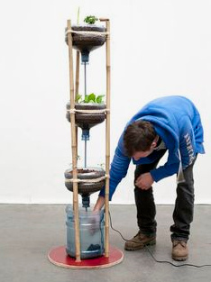 Es ist sogar möglich, mit einer Flasche oder einem Kessel neben der Pflanze und einer Baumwollschnur die Bewässerung sicherzustellen: Die Pflanze zieht sich über die Schnur das Wasser rein [web05]. [Beim Beginn muss die Schnur feucht sein].