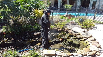 - Bei größeren Schwimmteichen und entsprechendem Kundenwunsch werden die vorgefertigten Folienteile vor Ort von uns verschweißt (je nach Untergrund faltenarm oder faltenfrei)