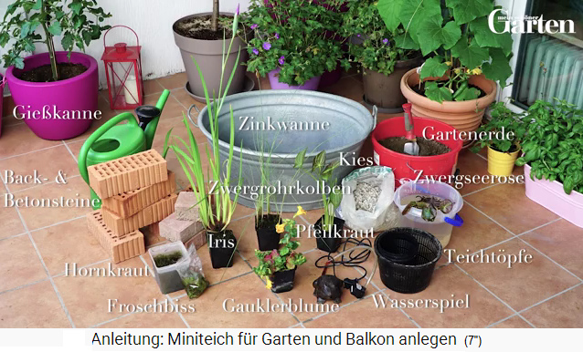 Video: Anleitung: Miniteich für Garten und Balkon anlegen: https://www.youtube.com/watch?v=6epa68aE6Ws