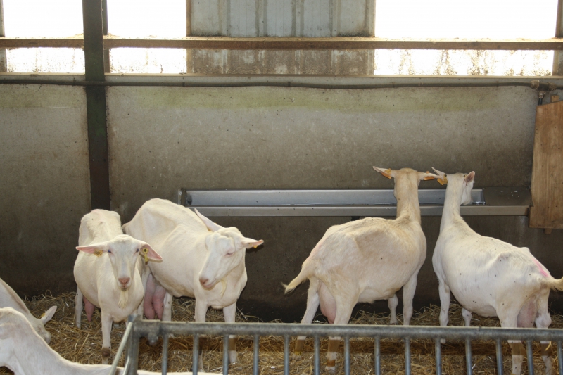 [82,83] Schaf- und Ziegentränke an der Wand im Stall: