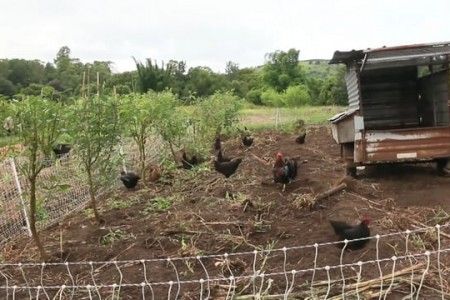 Zaytuna Farm, Hühner säubern ein Feld, sie wurden mit