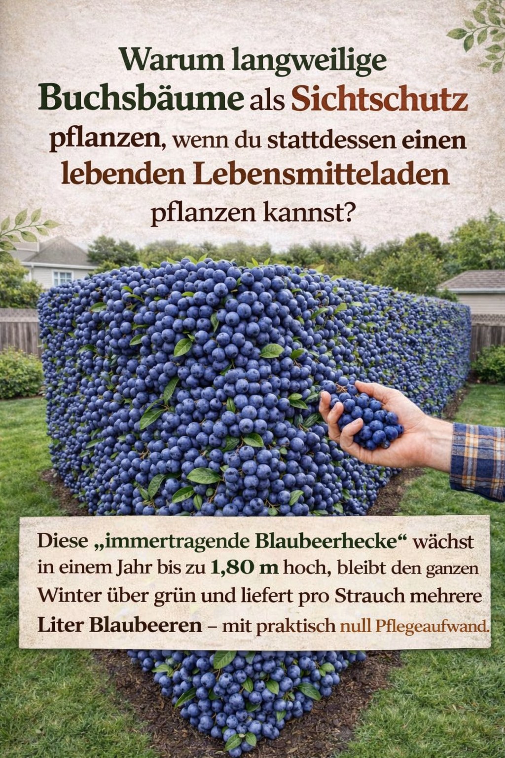 31.1.2026: Statt fruchtlose Buchsbaumhecken Beerenhecken pflanzen - z.B. eine Blaubeerenhecke: