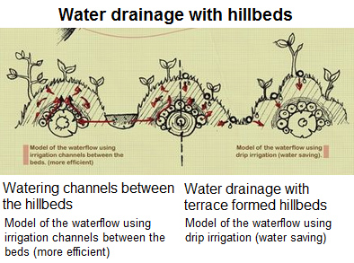 [web31] Permakultur, der Wasserfluss am Hügelbeet mit Kanal
