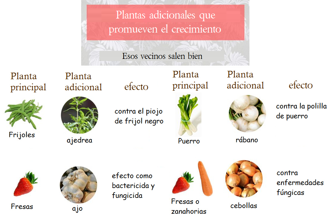 Las verduras crecen de manera diferente - consumen nutrientes de manera diferente - se ayudan mutuamente siendo combinados correctamente