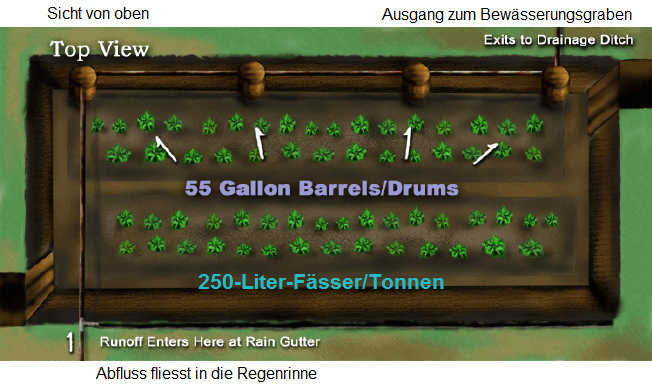 Con este plan, las paredes de tierra son dobladas, principalmente no se necesita eso. Faltan bancales elevados.
