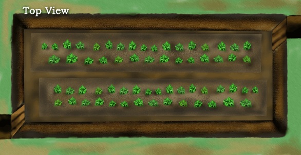 Dado que este invernadero de fosa barata no tiene un drenaje, entonces se construyó en el piso una capa de piedras grandes y una capa de grava, y eso fue cubierto con tierra.