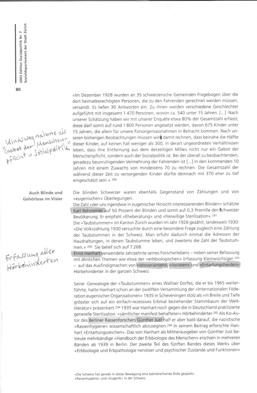 Thomas Huonker: "Fürsorge" in Zürich 1890 bis 1970; Sozialdepartement der Stadt Zürich 2002, S. 80
