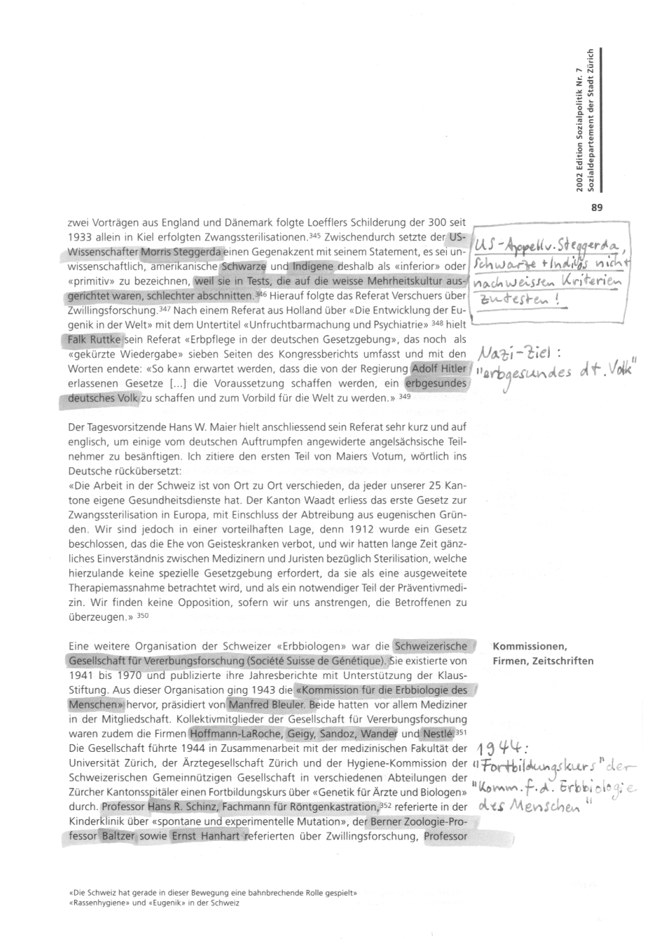 Thomas Huonker: "Fürsorge" in Zürich 1890 bis 1970; Sozialdepartement der Stadt Zürich 2002, S. 89