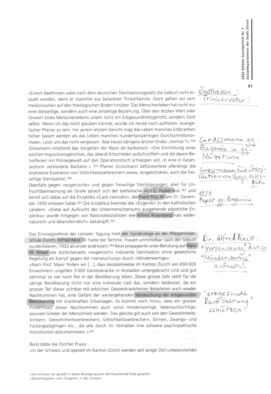 Thomas Huonker: "Fürsorge" in Zürich 1890 bis 1970; Sozialdepartement der Stadt Zürich 2002, S. 91