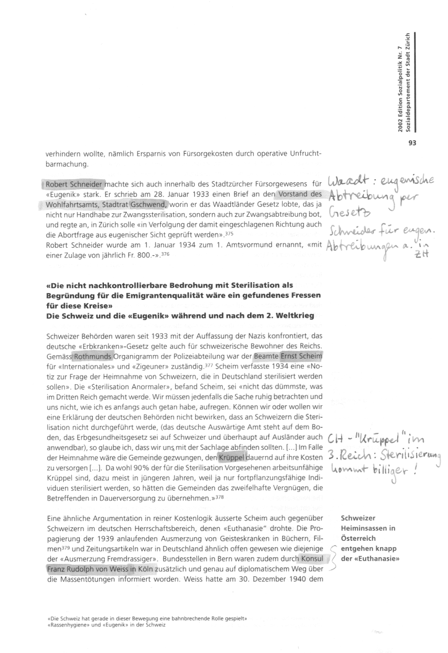 Thomas Huonker: "Fürsorge" in Zürich 1890 bis 1970; Sozialdepartement der Stadt Zürich 2002, S. 93