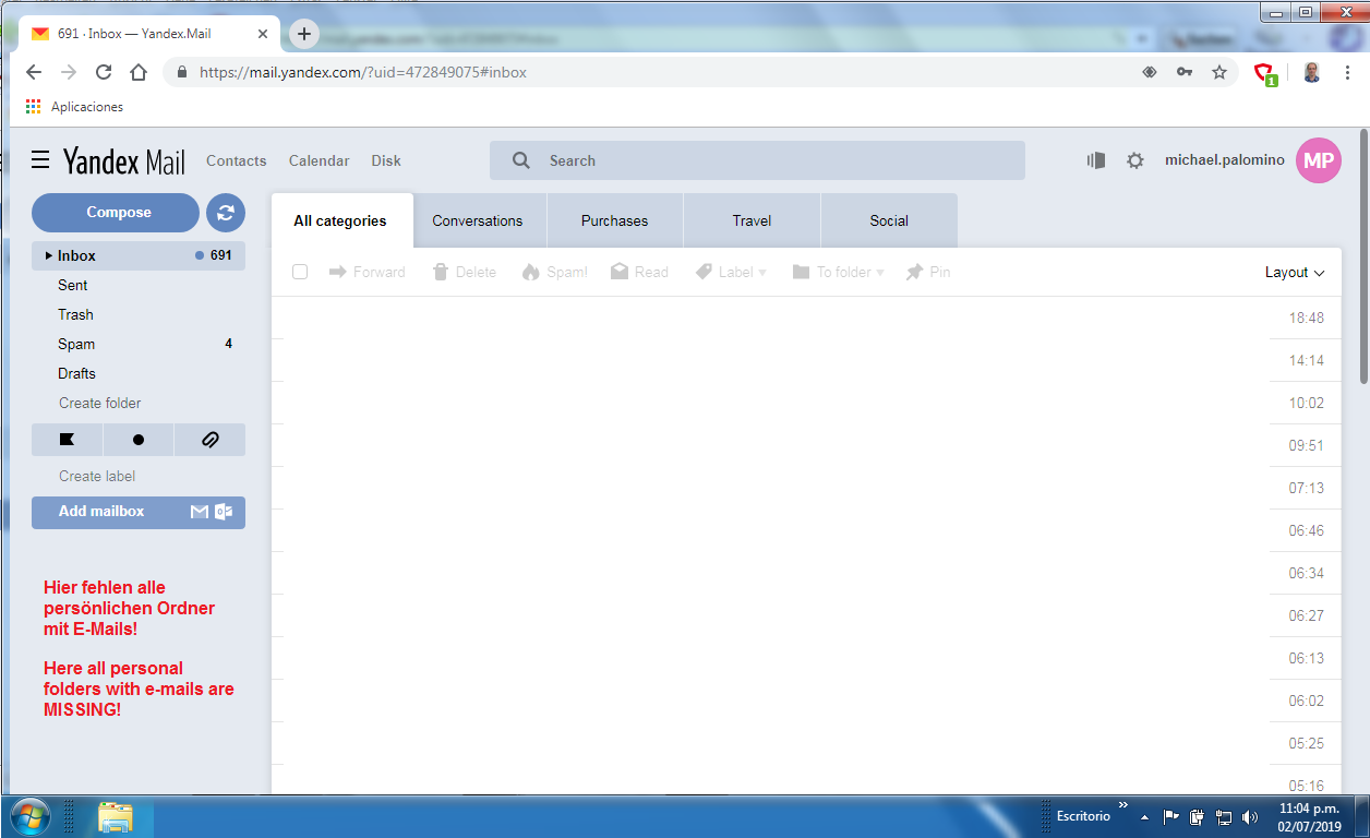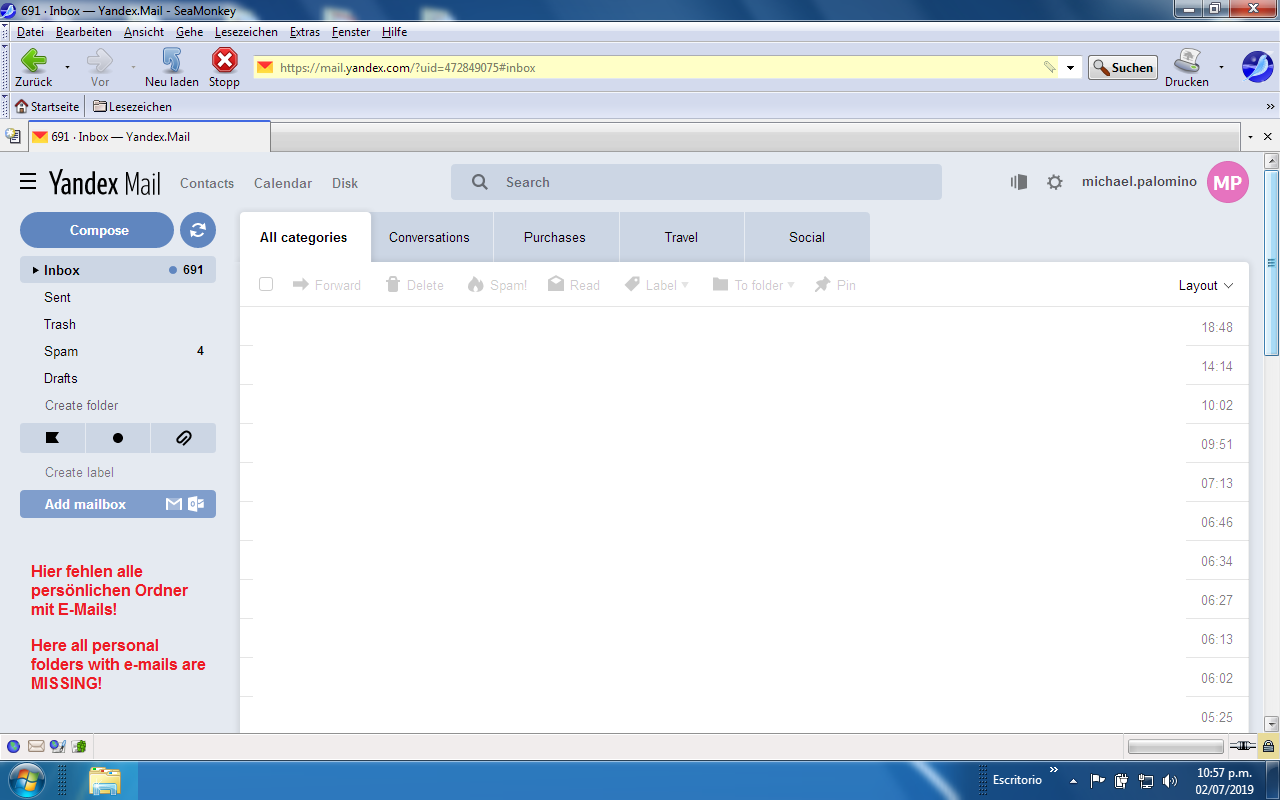 3.7.2019: Mein Yandex-Mail wurde teilweise