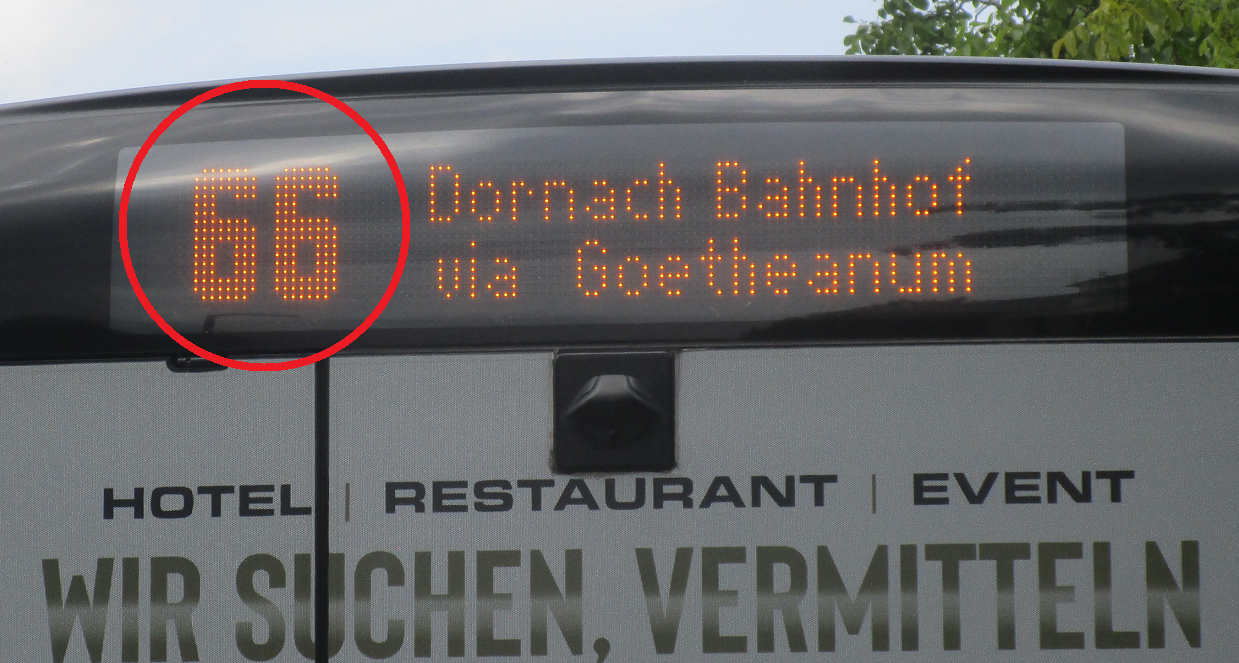 Die Buslinie zum Goetheanum in Dornach hat die Nr.66