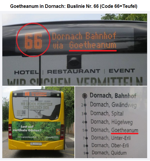 Das Goetheanum hat den Code 66 des Teufels von Rothschild - Buslinie Nummer 66 [2] - Sammelfoto [5]