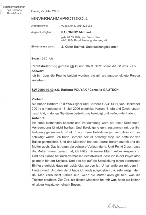 [von der Basler Staatsanwaltschaft] zu den Taten befragt