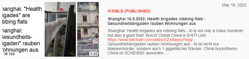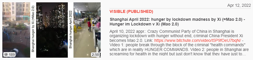 Video vom 17.4.2022: KPChina 17.4.2022: Totaler Terror beim Lockdown Shanghai - total terrorism Xi=terrorist