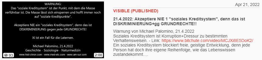 Video voim 21.4.2022: 21.4.2022: Akzeptiere NIE 1 "soziales Kreditsystem", denn das ist DISKRIMINIERUNG+gg GRUNDRECHTE!!