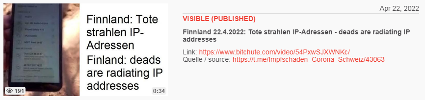 Video vom 22.4.2022: Finnland 22.4.2022: Tote strahlen IP-Adressen - deads are radiating IP addresses